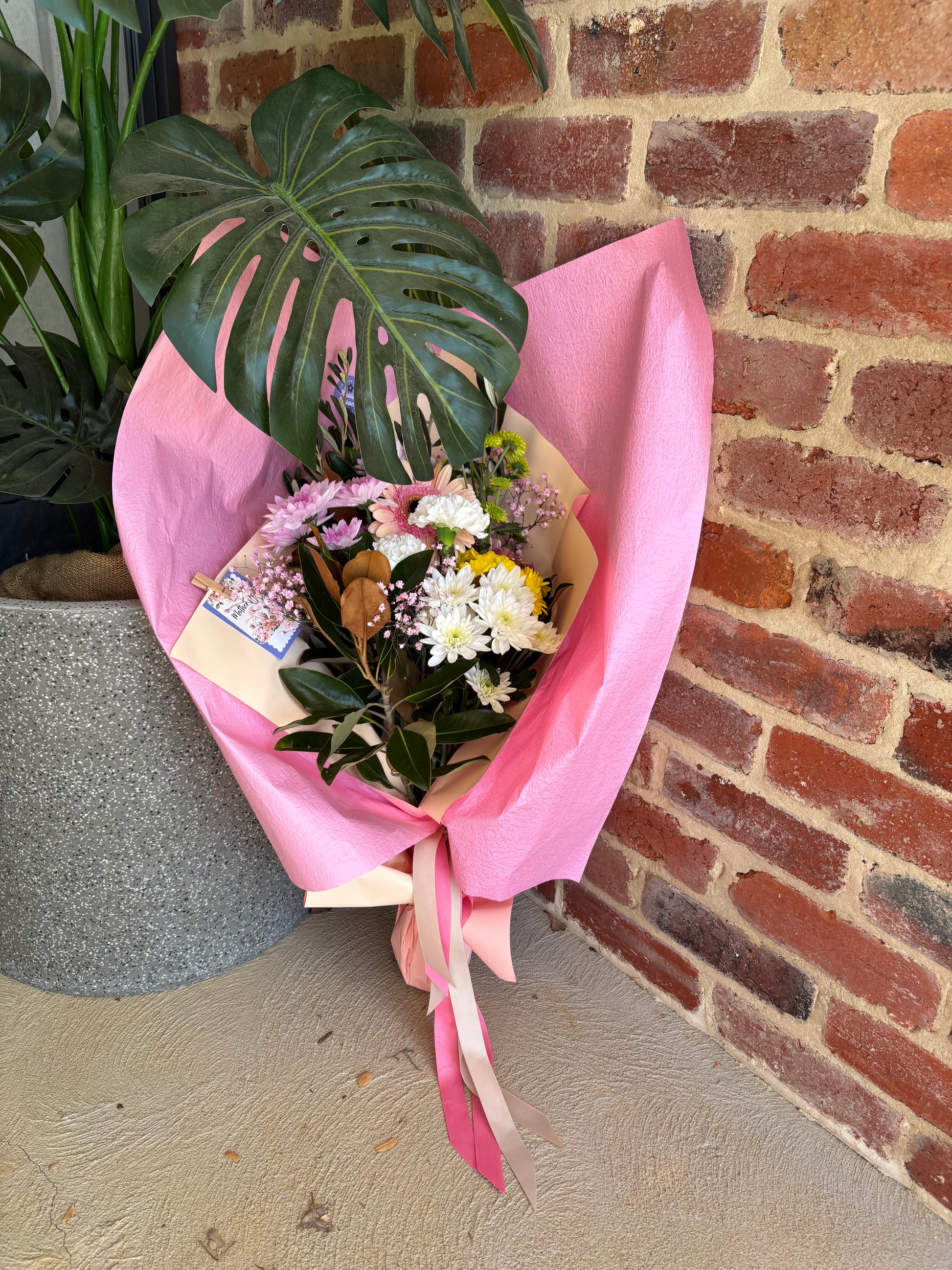 Handcrafted using farm-fresh or locally grown blooms, wrapped in stunning bold paper with colour ribbon.